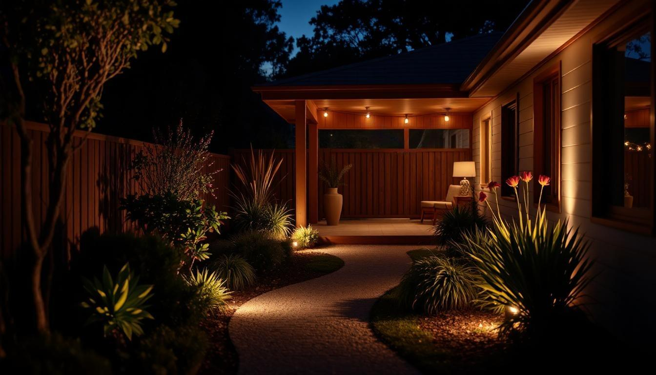 Have a sculpture, big tree, or flower bed you love? Point a small spotlight at it! It helps make that area stand out and gives your garden a more stylish look.